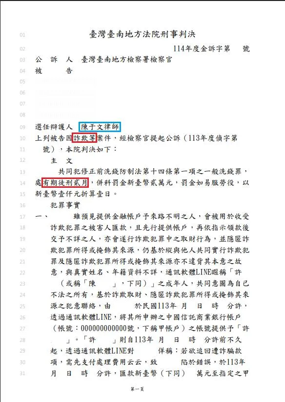 【判決實例:詐欺、洗錢、車手】人頭帳戶|提領款項